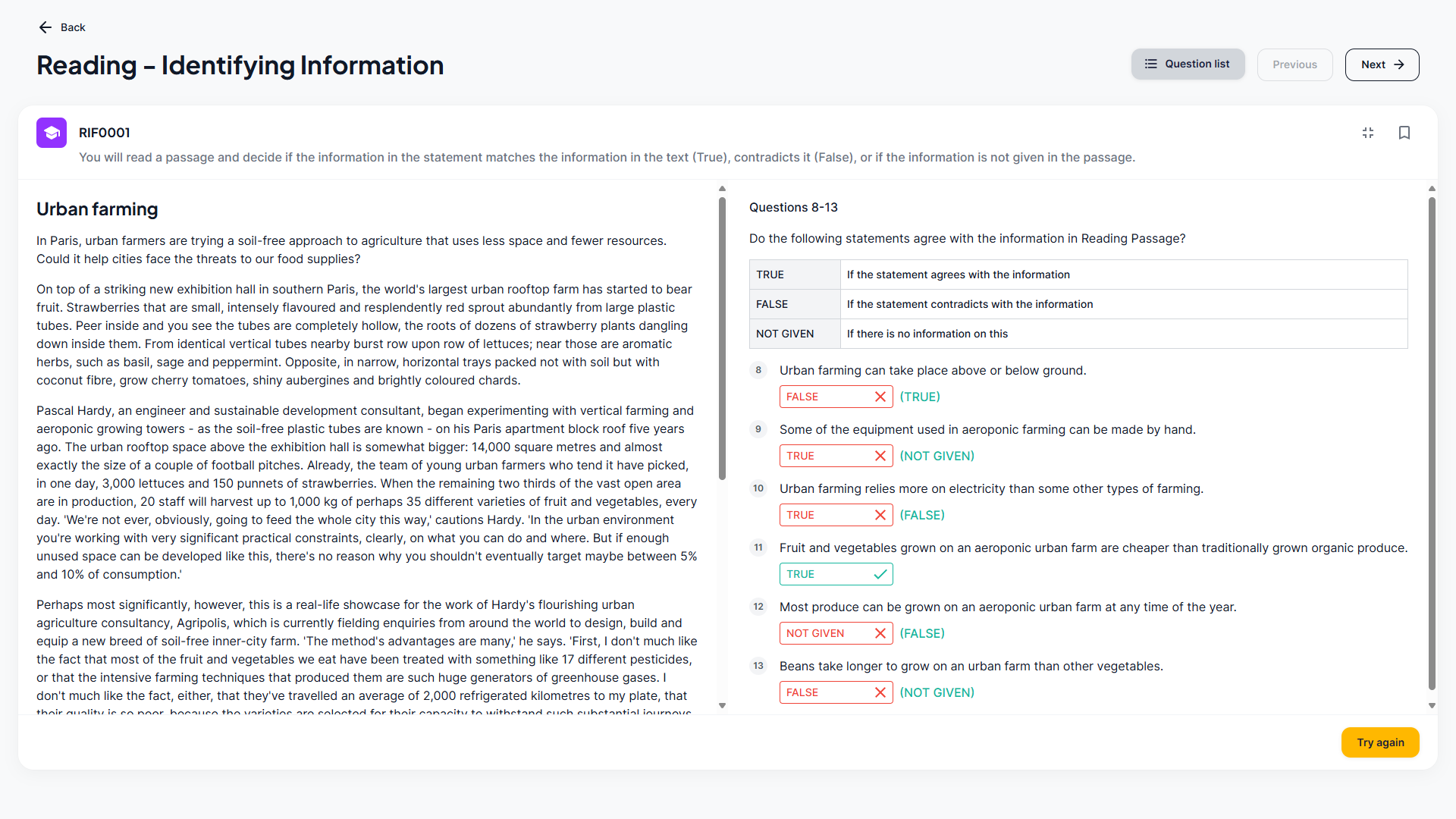 How to practice Reading - Identifying Information True/False/Not Given in Lume Test?